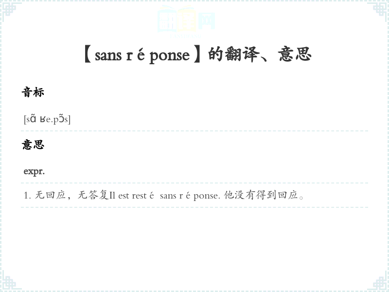 【sans réponse】是什么意思、字义解释