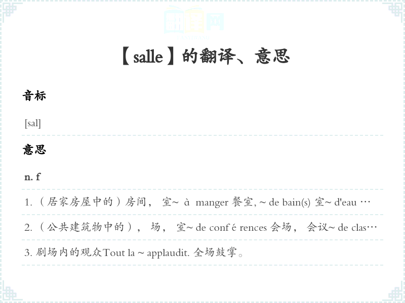 【salle】 联想、 近义词、 反义词、 同音、近音词 联想词