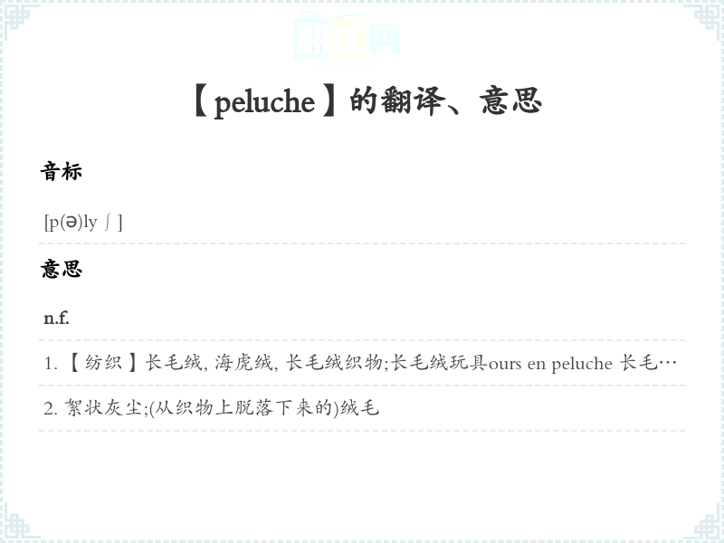 【peluche】是什么意思、字义解释
