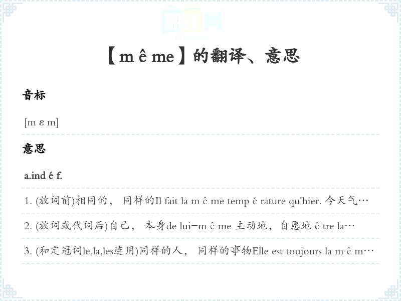 【même】是什么意思、字义解释