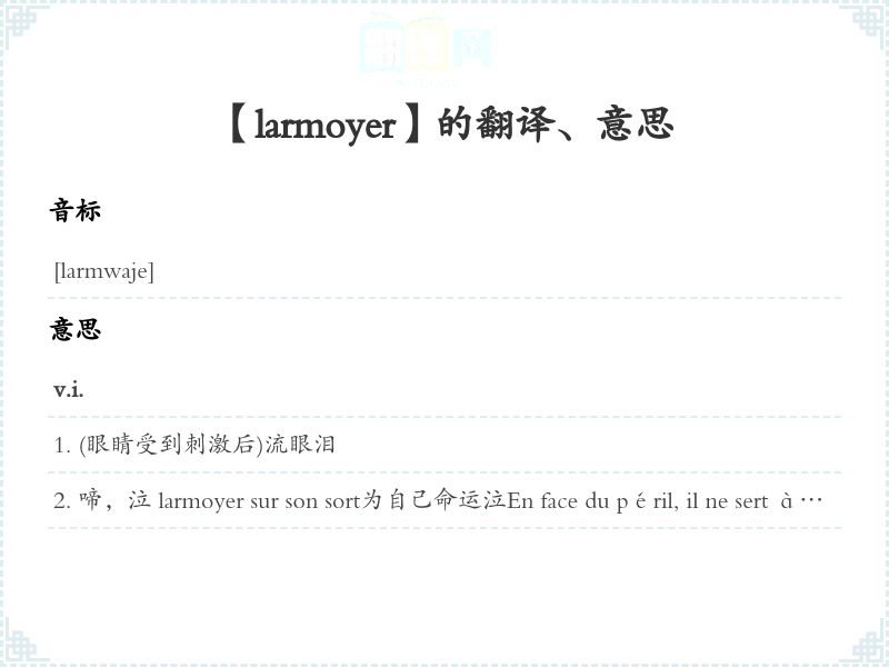 【larmoyer】是什么意思、字义解释