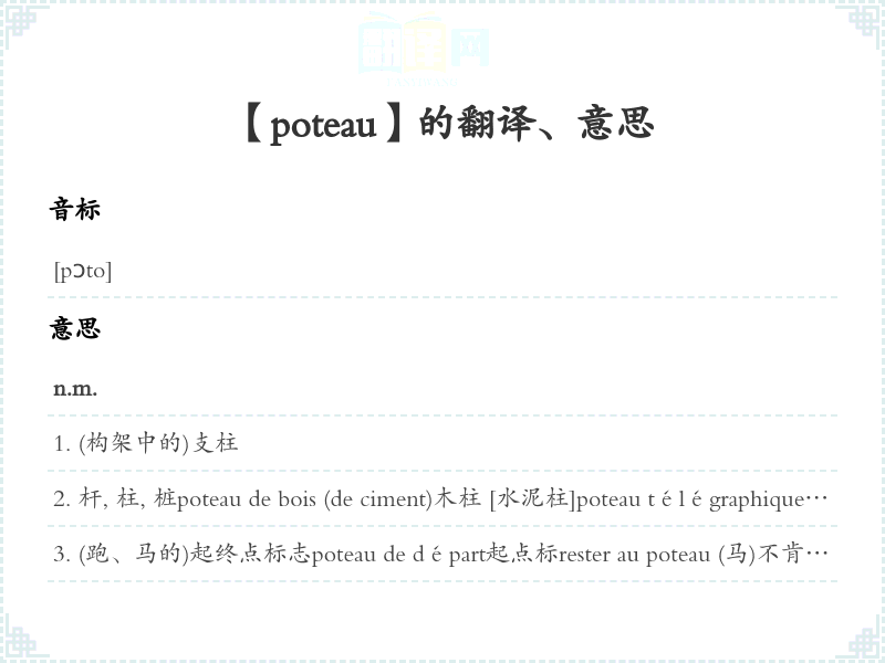 【poteau】是什么意思、字义解释