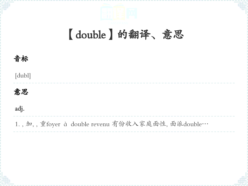 【double】 助记:、 词根:、 近义词:、 反义词: 联想词