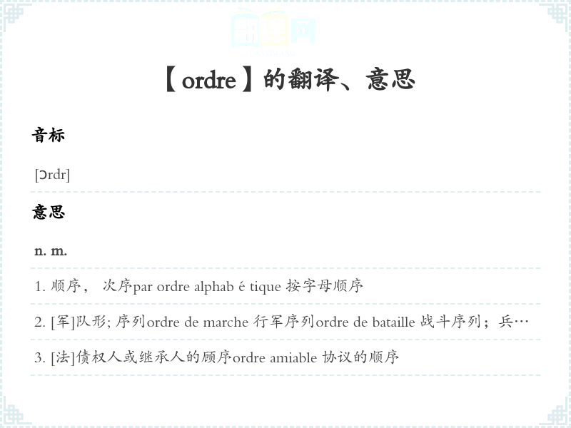 【ordre】是什么意思、字义解释