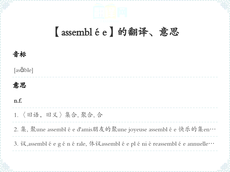 【assemblée】是什么意思、字义解释