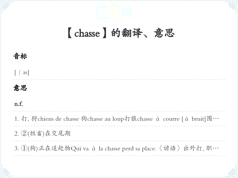 【chasse】是什么意思、字义解释