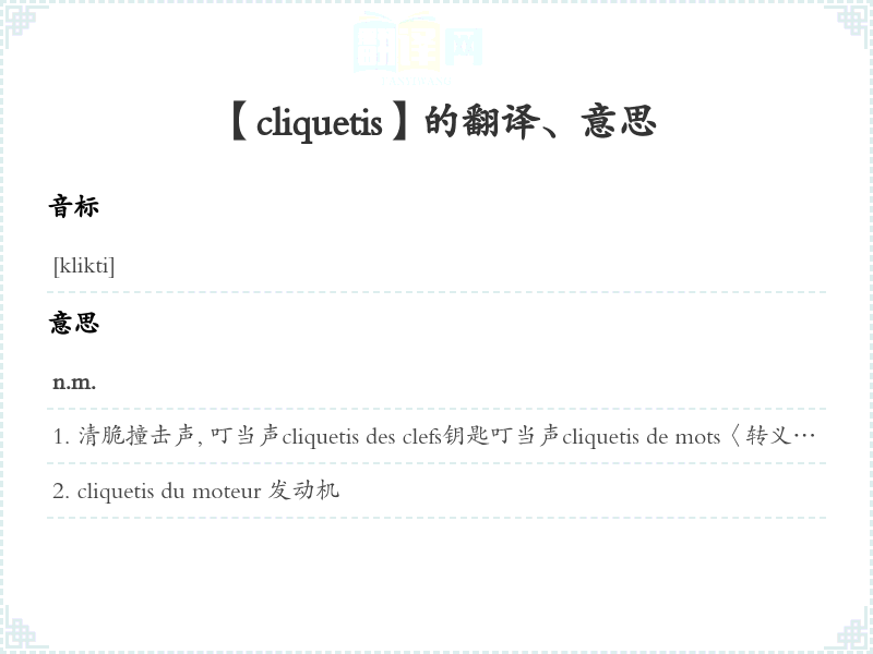 【cliquetis】是什么意思、字义解释