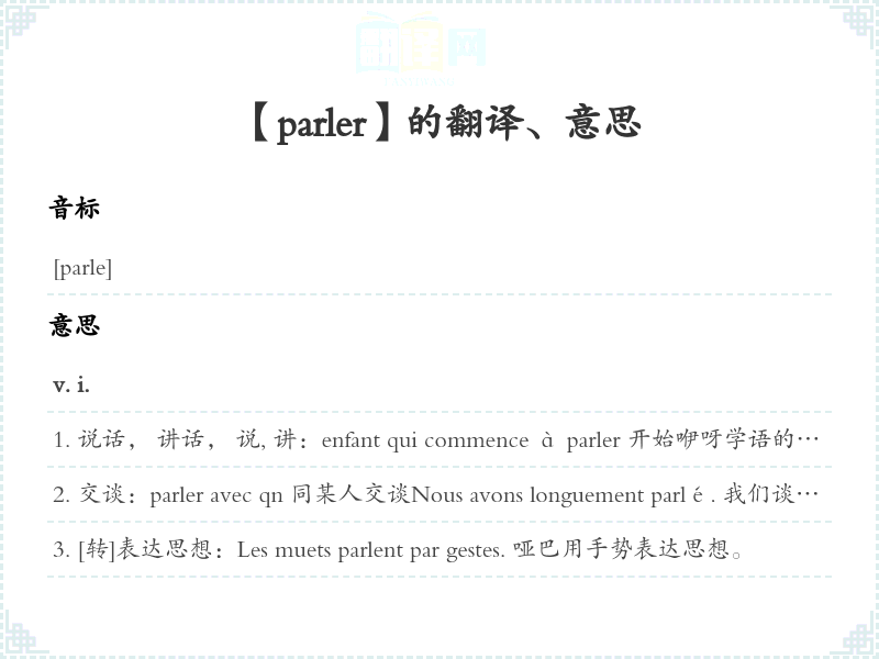 【parler】 联想:、 近义词:、 反义词: 联想词