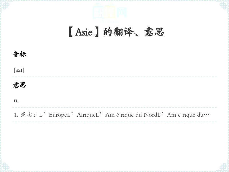【Asie】是什么意思、字义解释