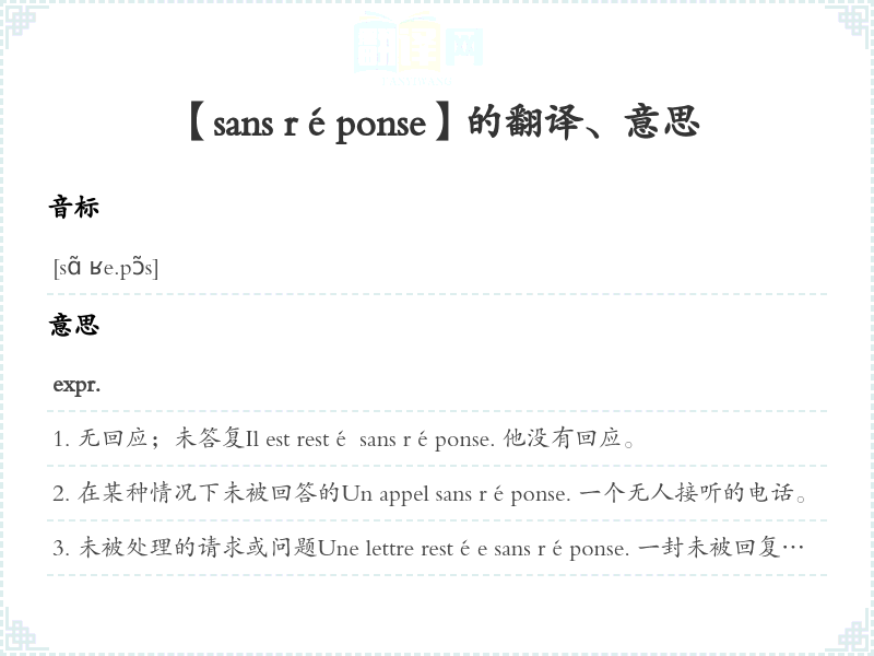【sans réponse】是什么意思、字义解释
