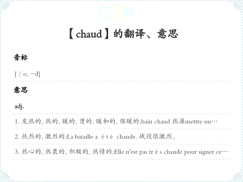 【chaud】是什么意思、字义解释