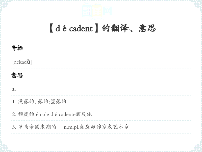 罗马帝国末期的— n.m.pl.颓废派作家或艺术家