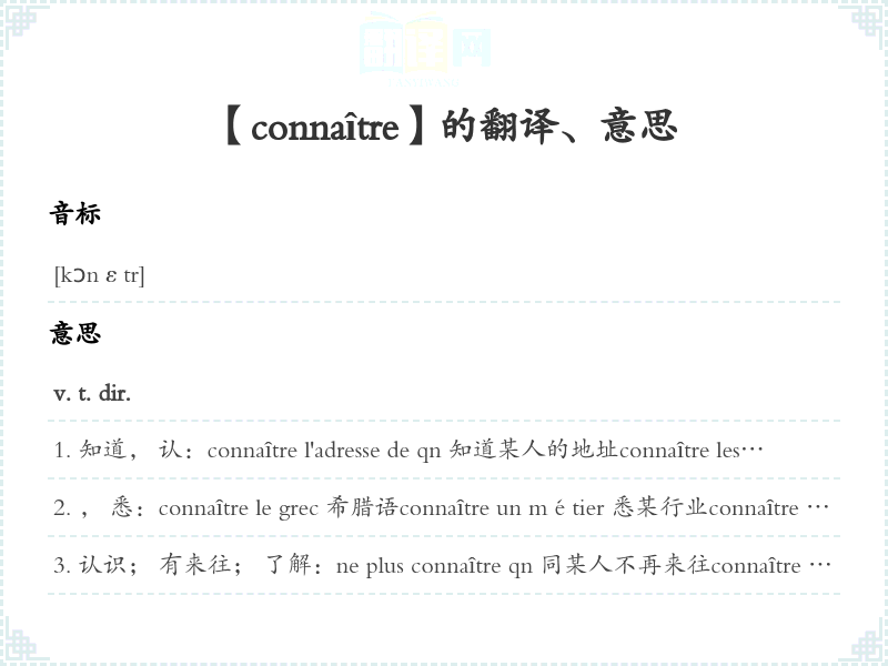 【connaître】是什么意思、字义解释