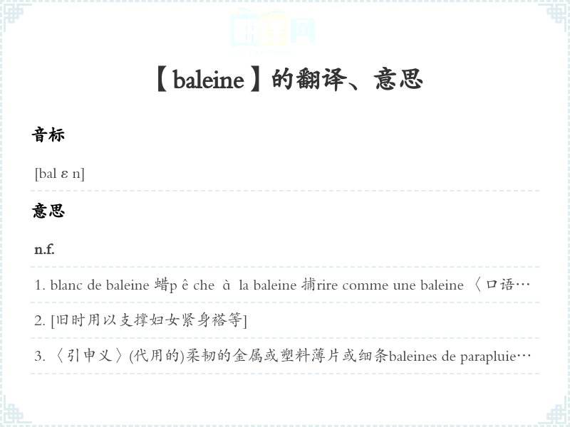 blanc de baleine 蜡pêche à la baleine 捕rire comme une baleine 〈口语〉张口大