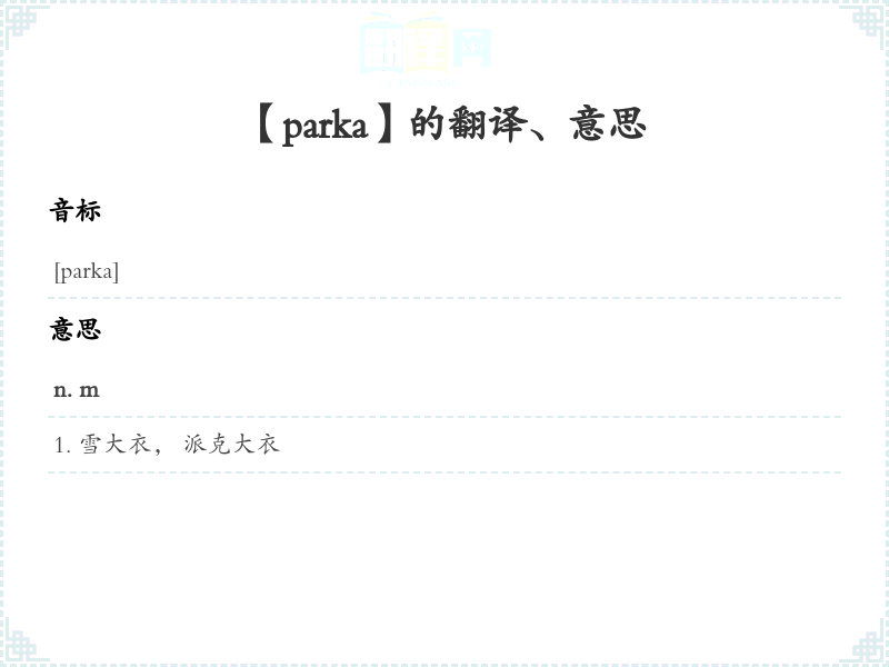 【parka】是什么意思、字义解释