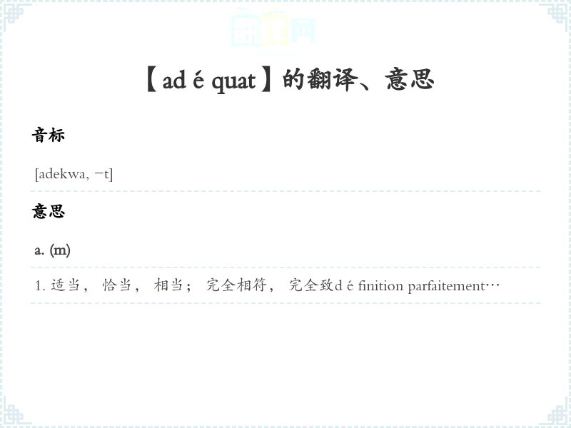 【adéquat】 派生:、 近义词:、 反义词: 联想词