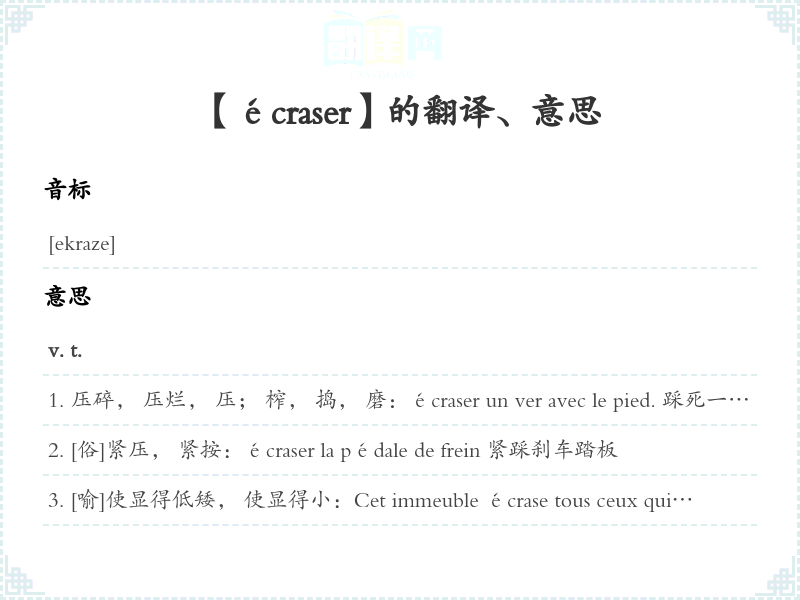 【écraser】 联想:、 近义词:、 反义词: 联想词