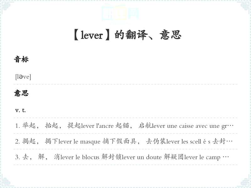 【lever】 近义词:、 反义词: 联想词