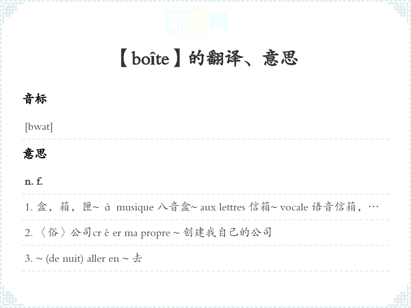 【boîte】是什么意思、字义解释