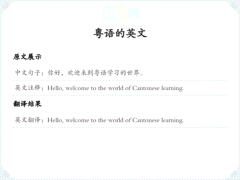 通过本篇文章的学习,希望你能够对"你好,欢迎来到粤语学习的世界。"这个词的翻译及相关用法有一个全面的理解,并在实际应用中灵活运用。