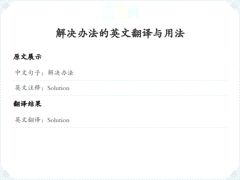 解决办法的英文翻译与用法