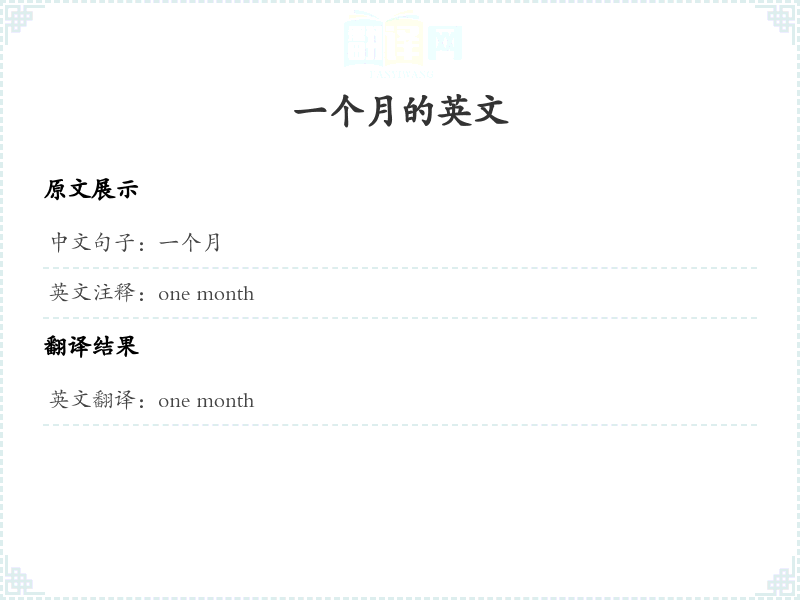 通过本篇文章的学习,希望你能够对"一个月"这个词的翻译及相关用法有一个全面的理解,并在实际应用中灵活运用。