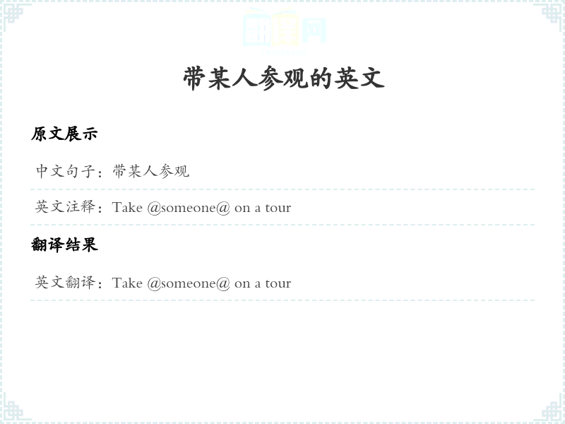 通过本篇文章的学习,希望你能够对"带某人参观"这个词的翻译及相关用法有一个全面的理解,并在实际应用中灵活运用。