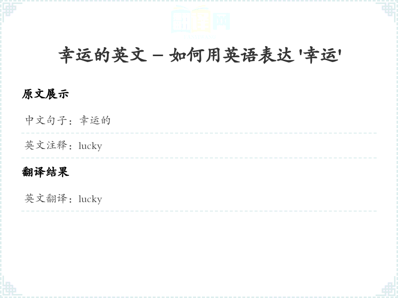 通过本篇文章的学习,希望你能够对"幸运的"这个词的翻译及相关用法有一个全面的理解,并在实际应用中灵活运用。