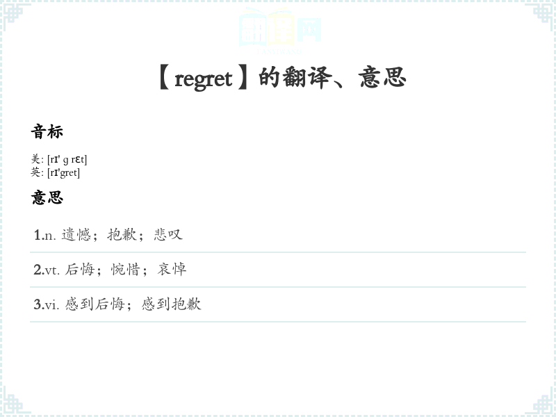 【regret】是什么意思、字义解释