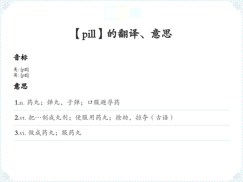 【pill】是什么意思、字义解释