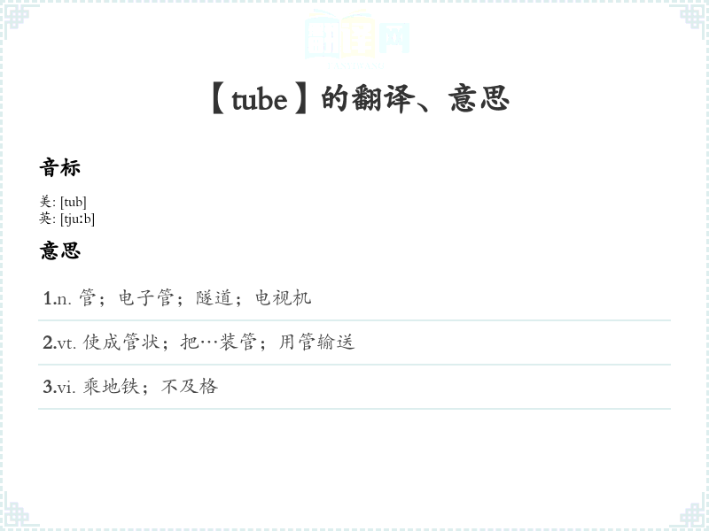 【tube】是什么意思、字义解释