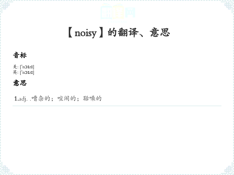 "Noisy" 的字面含义是指发出较大声响的,通常用来形容环境、设备或人等产生的噪音。
