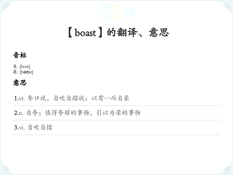【boast】是什么意思、字义解释
