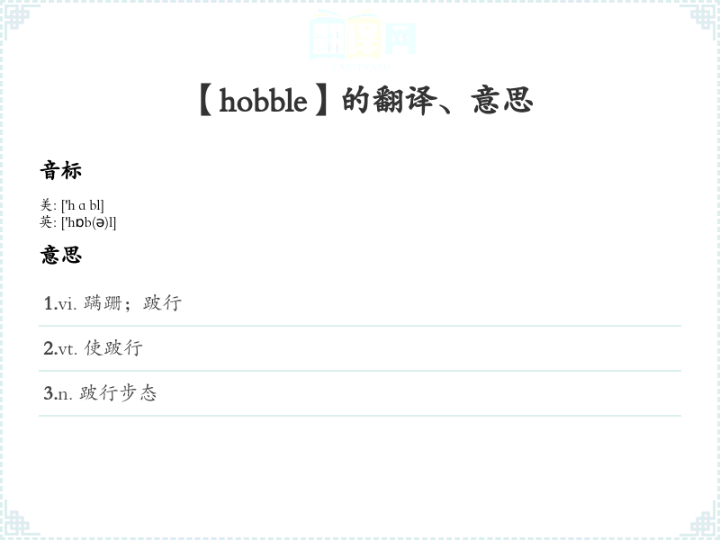 以上就是对单词“hobble”的全面分析与学*方法,希望能帮助您更好地理解和记忆这个词汇。