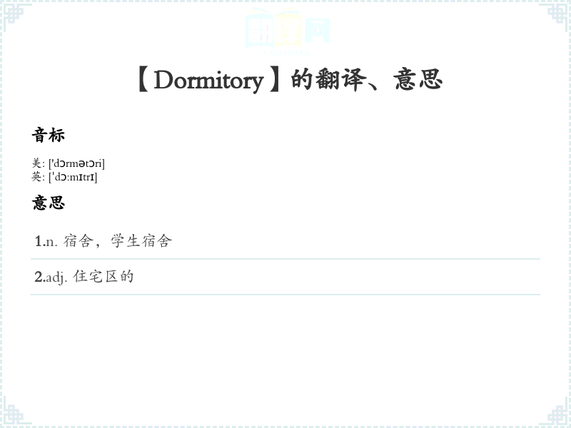 【Dormitory】是什么意思、字义解释