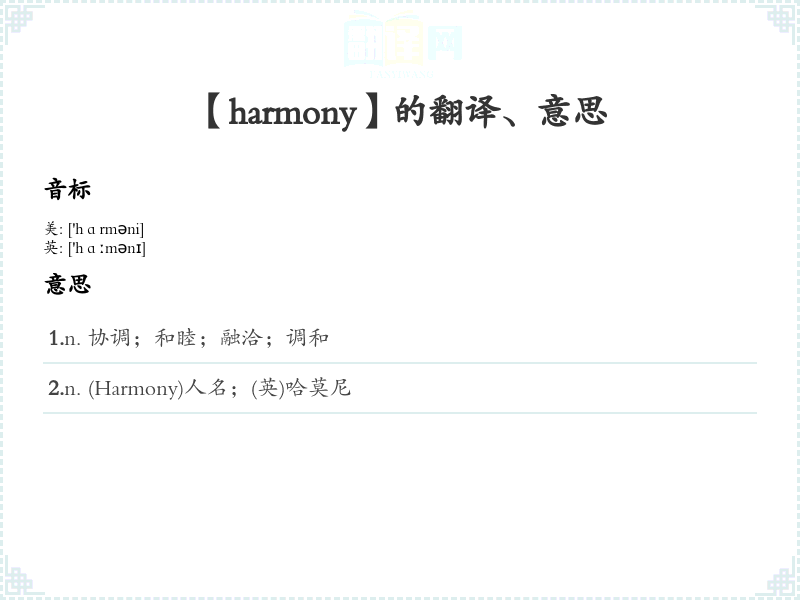 【harmony】是什么意思、字义解释