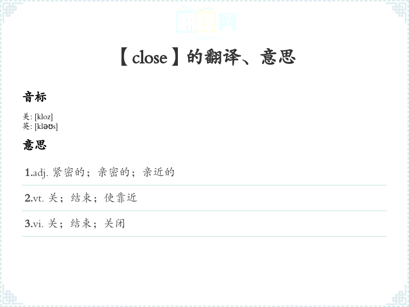 【close】是什么意思、字义解释