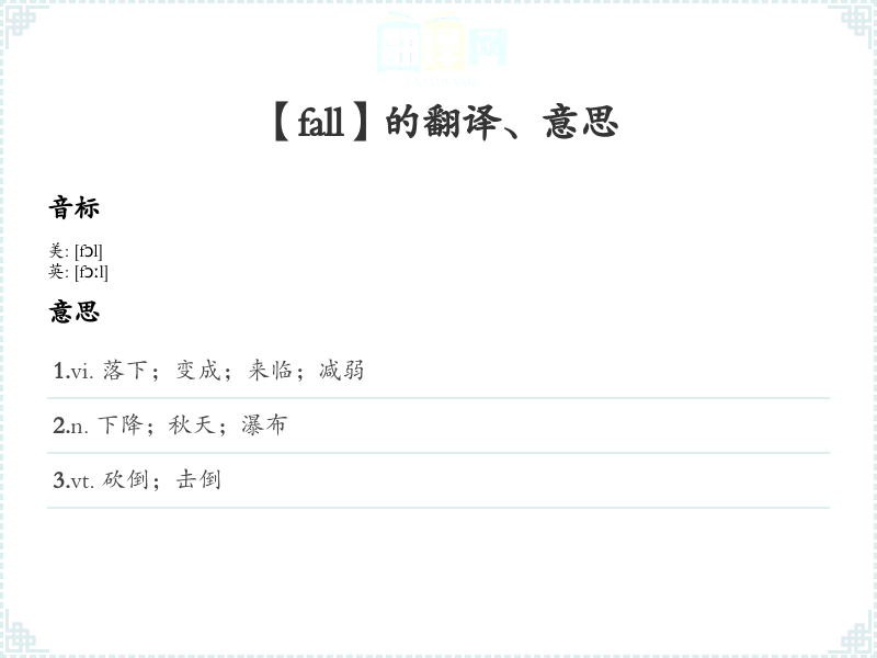【fall】是什么意思、字义解释