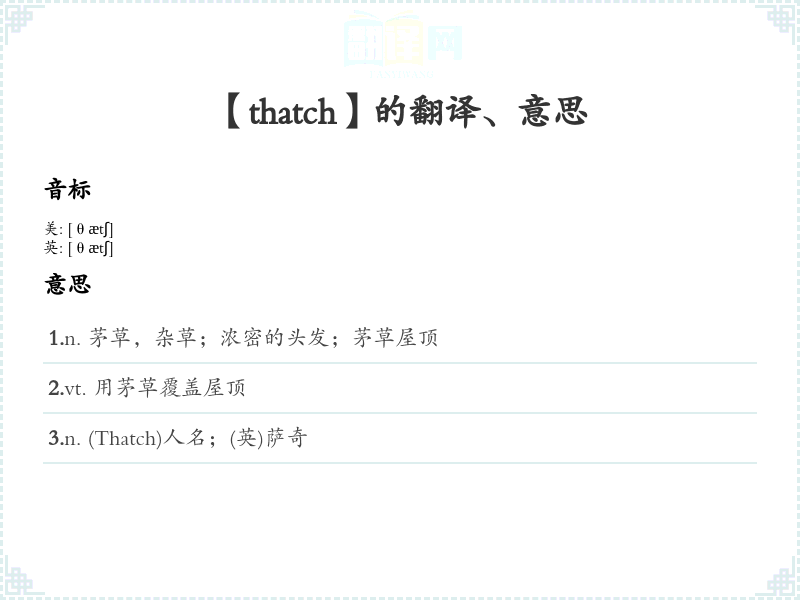 【thatch】是什么意思、字义解释