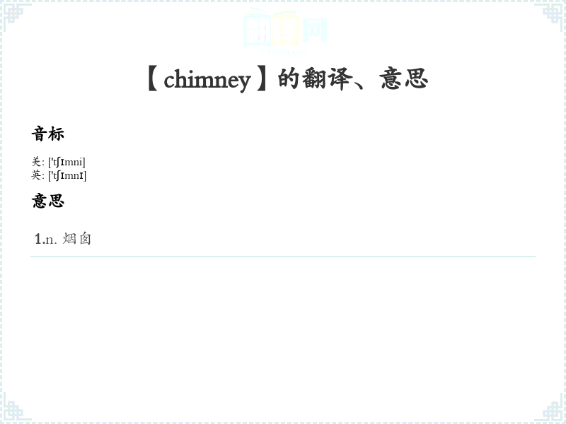 - 音标记忆法:chimney的音标为/ˈtʃɪmni/,可以通过分音节来记忆,强调“chim”和“ney”的发音。
