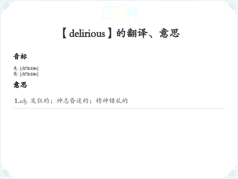 【delirious】是什么意思、字义解释