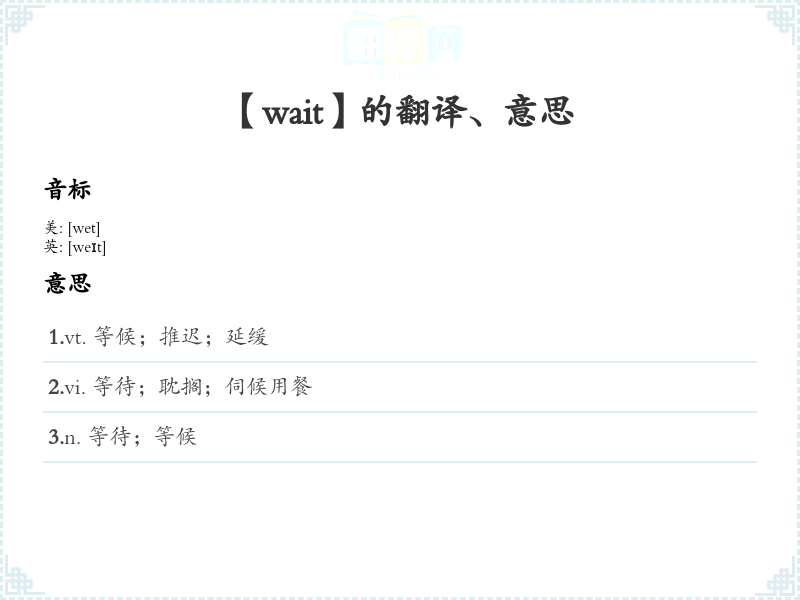 通过以上的分析和示例,可以更全面地理解和运用 "wait" 这个单词。
