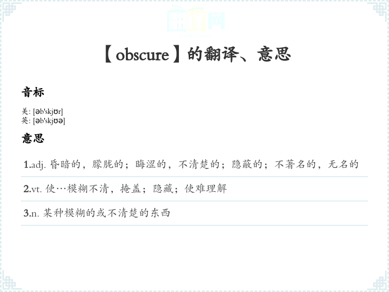 【obscure】是什么意思、字义解释