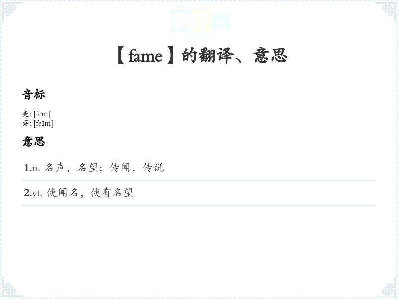 【fame】是什么意思、字义解释