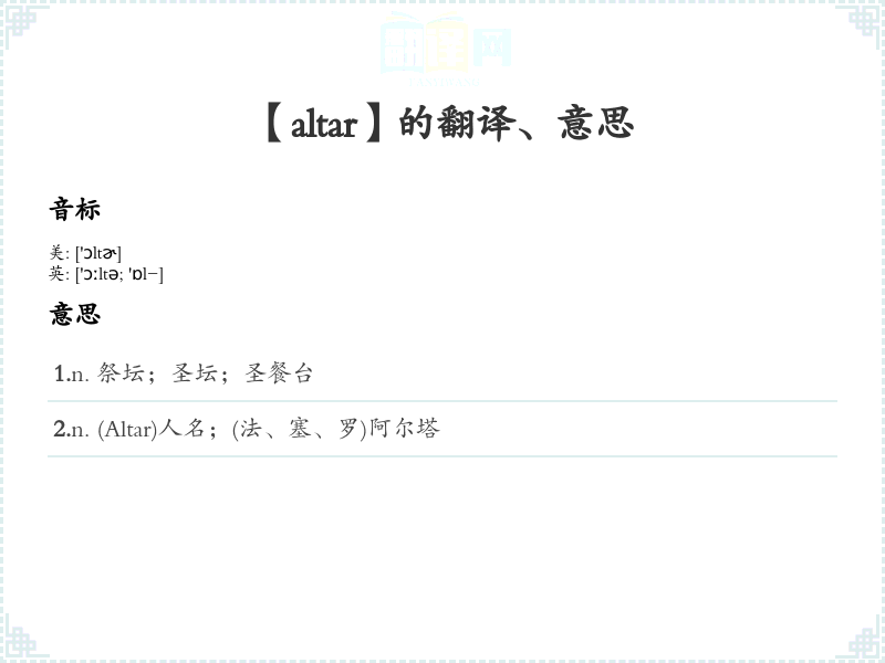 【altar】是什么意思、字义解释