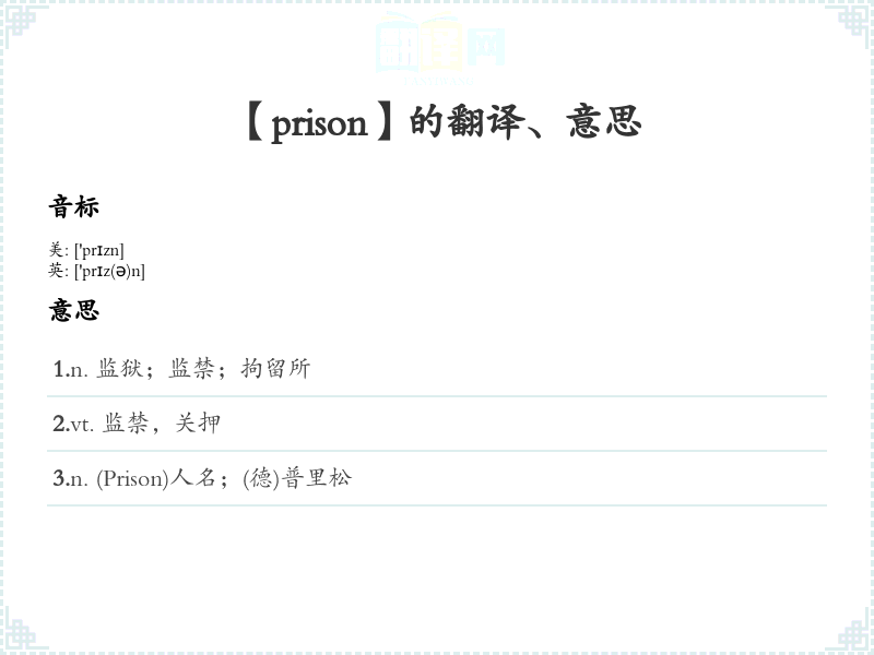 【prison】是什么意思、字义解释