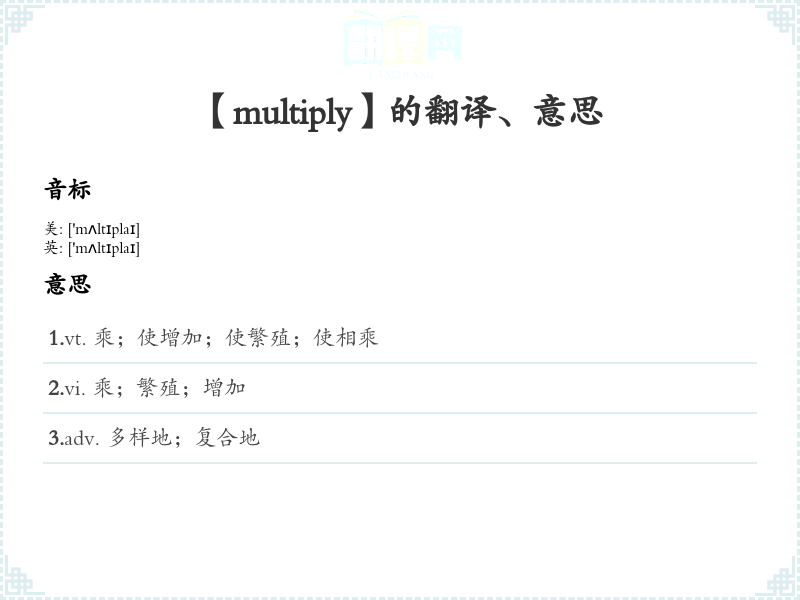 通过以上分析,希望您能更好地理解并运用“multiply”这个单词!