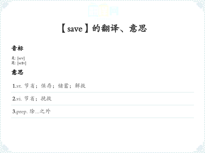 【save】是什么意思、字义解释