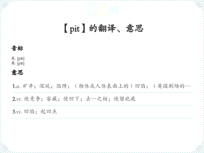 通过上述分析,"pit" 这个单词在不同语境中有着丰富的含义和应用,理解其用法有助于提升英语表达能力。
