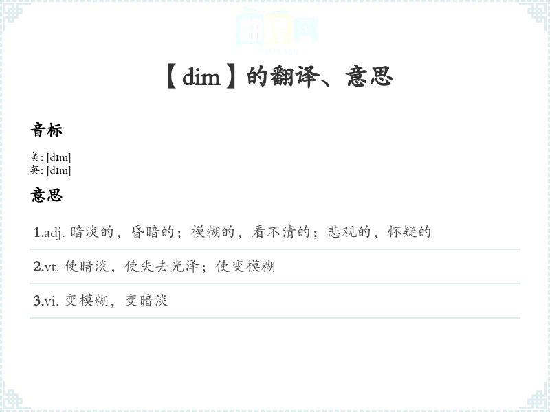 【dim】是什么意思、字义解释
